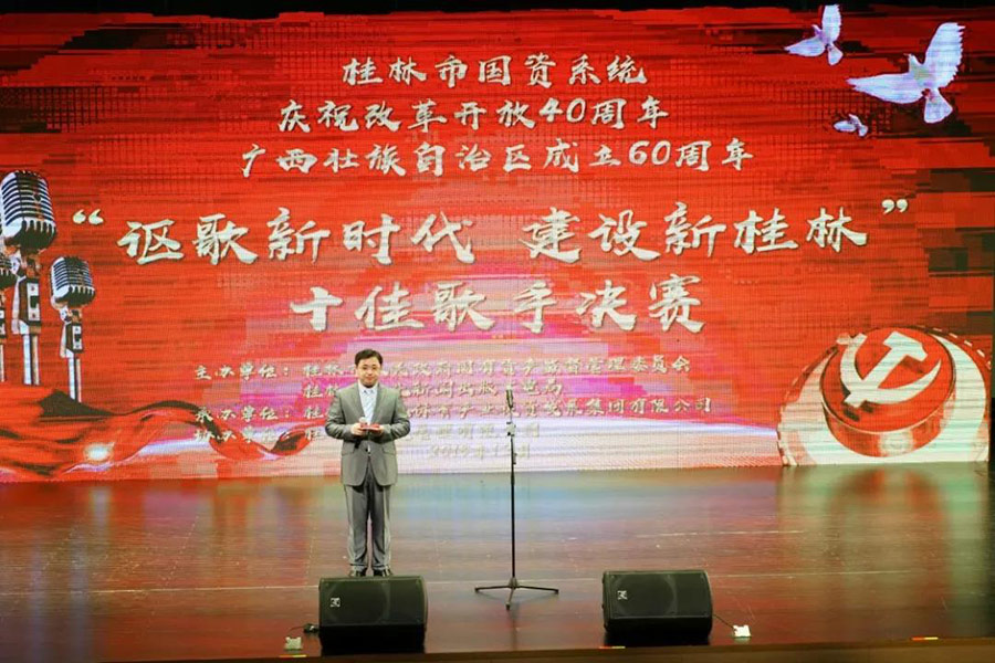 本次比賽旨在慶祝中華人民共和國成立69 周年、廣西壯族自治區(qū)成立60 周年,禮贊黨的十九大描繪的新時代宏偉藍(lán)圖。豐富國資系統(tǒng)干部職工的業(yè)余文化生活,謳歌國資系統(tǒng)干部職工圓夢新時代、建功新時代的豪情壯志,增強國資系統(tǒng)干部職工投身桂林國際旅游勝地建設(shè)的緊迫感、責(zé)任感和使命感。