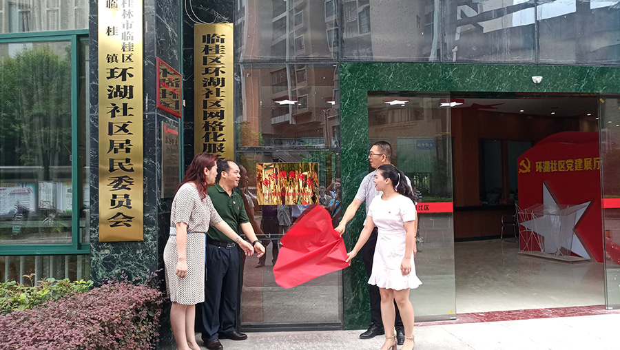 臨桂新區(qū)工委委員、管委會副主任覃正東,臨桂新區(qū)工委組織人事部部長梁利,臨桂區(qū)委正科級組織員、區(qū)委組織部部務(wù)會成員彭勝發(fā),環(huán)湖社區(qū)黨支部書記李伊倩共同為“便民服務(wù)驛站”揭牌,新城投資集團黨支部副書記鄧仁友,臨桂區(qū)社會事務(wù)管理中心常務(wù)副主任朱志桂以及環(huán)湖社區(qū)黨支部委員等領(lǐng)導(dǎo)出席了活動的啟動儀式。