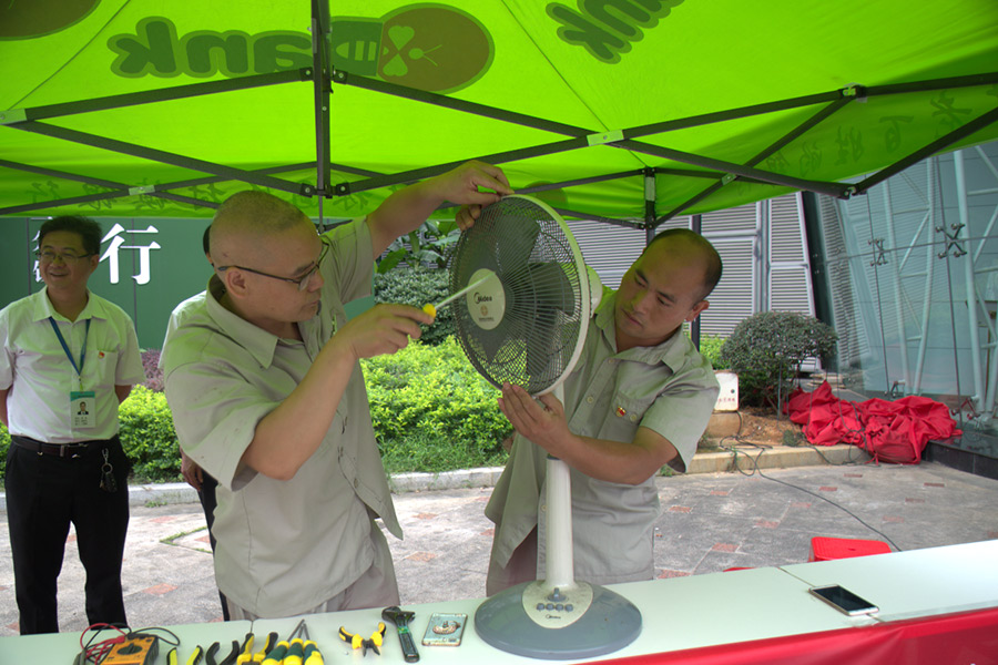 活動現(xiàn)場,一邊是小家電維修,一邊是生活常識咨詢服務(wù)。“這些東西不是很貴卻很容易壞,拿去修又不劃算,本打算扔了,沒想到還能修好,真是太好了?!本用裢醢⒁讨笨洹,F(xiàn)場居民紛紛把損壞的家電拿了出來。燒水壺、電吹風、取暖器、電風扇等,在黨員志愿者的巧手下,一件件家電“重獲新生”?,F(xiàn)場黨員們還向大家講解家電使用和保養(yǎng)方法,解答居民在日常生活使用家電過程中遇到各種問題?!霸诩议T口就能享受到免費的服務(wù),真是太方便了,希望這樣的活動能經(jīng)常舉辦!”一旁的張阿姨還意猶未盡。