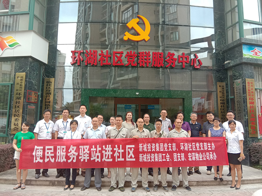 2018年6月29日上午,新城投資集團黨支部聯(lián)合環(huán)湖社區(qū)黨支部在環(huán)湖社區(qū)舉行了“便民服務(wù)驛站”揭牌活動和啟動儀式。