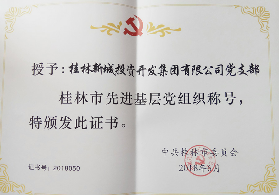 2018年6月29日上午,在桂林市直機(jī)關(guān)小禮堂舉行的桂林市慶祝中國(guó)共產(chǎn)黨成立九十七周年暨七·一表彰大會(huì)上,表?yè)P(yáng)了全市先進(jìn)基層黨組織、優(yōu)秀共產(chǎn)黨員、優(yōu)秀黨務(wù)工作者,新城投資集團(tuán)黨支部榮獲“桂林市先進(jìn)基層黨組織”稱號(hào),黨支部書記周道林代表新城投資集團(tuán)黨支部參加了此次表彰大會(huì)。