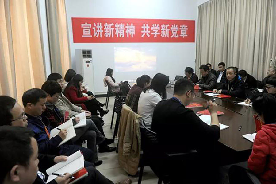 2018年2月28日上午,根據(jù)中共桂林市臨桂新區(qū)工作委員會關(guān)于學(xué)習(xí)貫徹十九大精神學(xué)習(xí)培訓(xùn)工作方案的安排,新城投資集團(tuán)黨支部組織全體黨員、入黨積極分子對新《黨章》進(jìn)行宣講學(xué)習(xí)。新城投資集團(tuán)黨支部書記周道林做《宣講新精神 共學(xué)新黨章》主題宣講,對集團(tuán)公司貫徹落實黨的十九大精神,學(xué)習(xí)領(lǐng)會新《黨章》規(guī)定,把新《黨章》規(guī)定落實到各項工作中等方面工作做出安排。