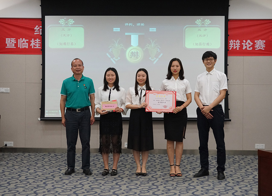決賽:知難行易/知易行難。對(duì)陣雙方:正方(梁雯棋、陳艷梅、譚佳璐、周鑫)對(duì)陣反方(陳茜、曾曼、顧夢(mèng)潔、蔣磊)。