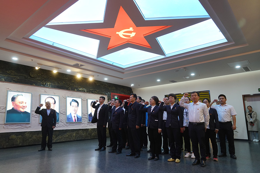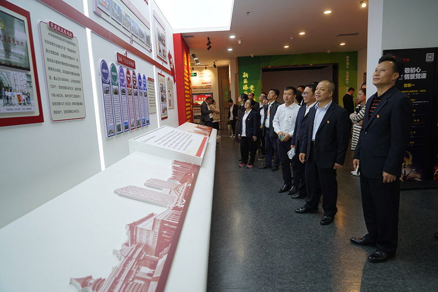 活動當天,大家參觀了位于新城投資集團辦公大樓一、二樓的桂林市黨群服務(wù)中心。講解員為黨員們一一講解了中心的定位、功能及各展區(qū)的內(nèi)容,黨員們認真聆聽講解員的講解,依次參觀了桂林市黨員志愿者服務(wù)總站、黨群業(yè)務(wù)受理區(qū)和黨組織活動區(qū)等展廳。體驗了“健康小屋”“城市書吧”“i游桂林”“時光隧道”“微笑墻”“非遺文化屋”“紅色影院”“電子翻書”等功能設(shè)施。通過觀看3D幻影成像《湘江戰(zhàn)役》和微電影《廖俊波》,真切感受了先輩們踐行初心拋頭顱、灑熱血的壯舉及廖俊波同志對黨忠誠、無私奉獻的高尚品質(zhì)。在以湘江戰(zhàn)役為歷史背景而制作的雕塑前,全體黨員合唱《國際歌》《中華人民共和國國歌》,重溫入黨誓詞。