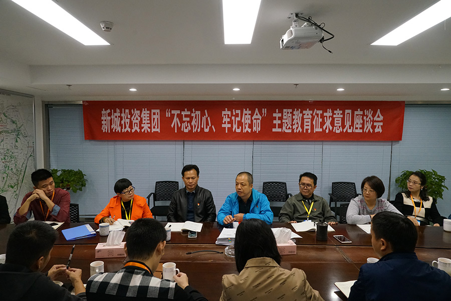 10月25日,根據(jù)開展“不忘初心、牢記使命”主題教育工作部署,新城投資集團(tuán)召開了征求意見座談會(huì),聽取與會(huì)人員對(duì)班子成員存在突出問題的反映,以及對(duì)改進(jìn)工作作風(fēng)、改進(jìn)工作的意見建議。會(huì)議由主題教育領(lǐng)導(dǎo)小組組長(zhǎng)、董事長(zhǎng)周道林主持,班子成員及各部室、子公司負(fù)責(zé)人參加座談會(huì)。