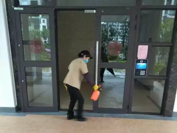 對所管項目的室內(nèi)場所實(shí)行全面消毒。對出入門禁、康體設(shè)施、地下車庫、電梯、垃圾中轉(zhuǎn)站等關(guān)鍵區(qū)位噴灑消毒水;使用醫(yī)用酒精、84消毒液等消毒劑擦拭兒童娛樂設(shè)施、公共通道的門把手、開關(guān)、按鍵等。針對人流密集的項目加大消毒頻次。
