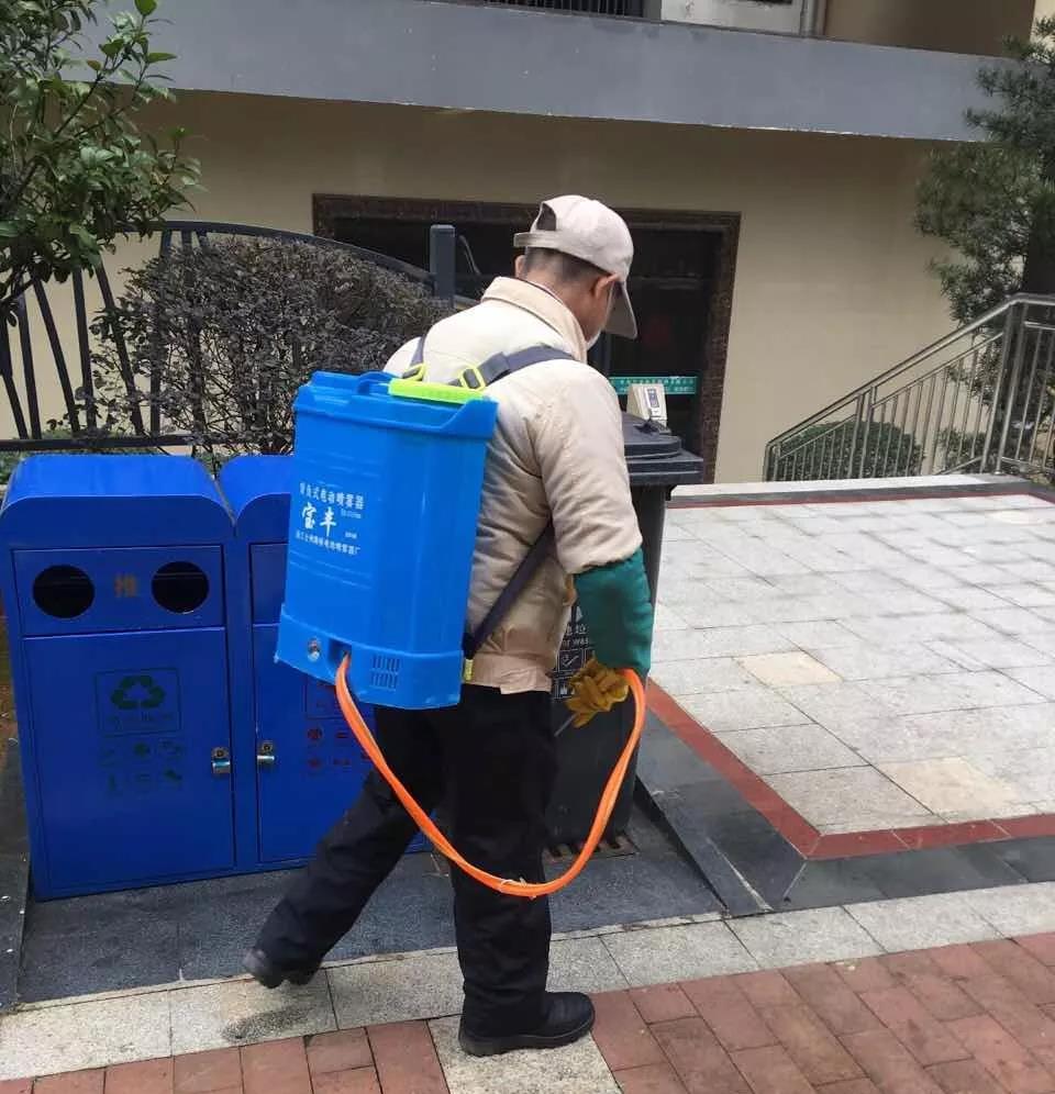 物業(yè)公司全體保潔人員自疫情開始,每天對小區(qū)客服中心、單元樓道、電梯、監(jiān)控室、垃圾桶、園區(qū)道路等公共區(qū)域進行全面消毒處理,為業(yè)主筑起安全屏障,同心同力,為打贏“病毒疫情戰(zhàn)”貢獻出自己的力量。