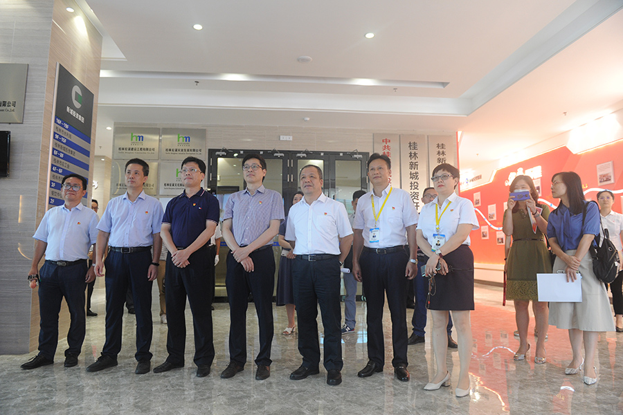 臨桂新區(qū)工委委員、管委會副主任文杰,市國資委黨委委員、組織部部長趙慶華,新區(qū)工委組織人事部部長梁利,集團黨總支委員陪同參觀。