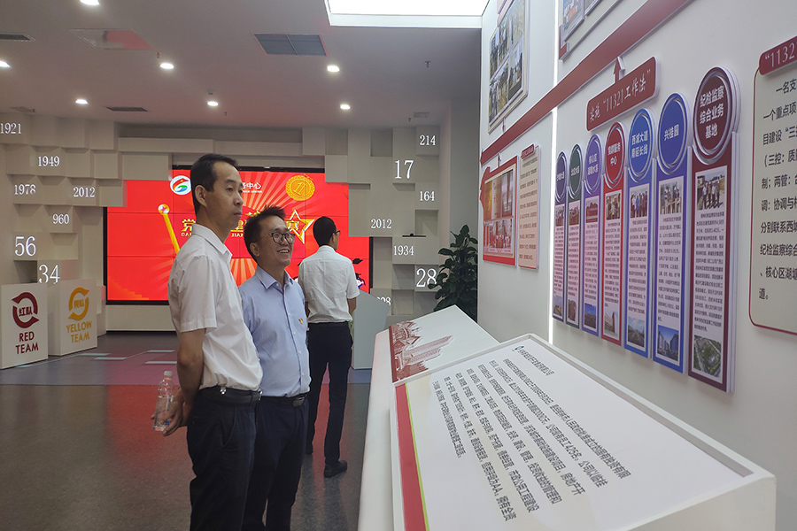 ▲調(diào)研組一行參觀集團(tuán)黨建展示區(qū)