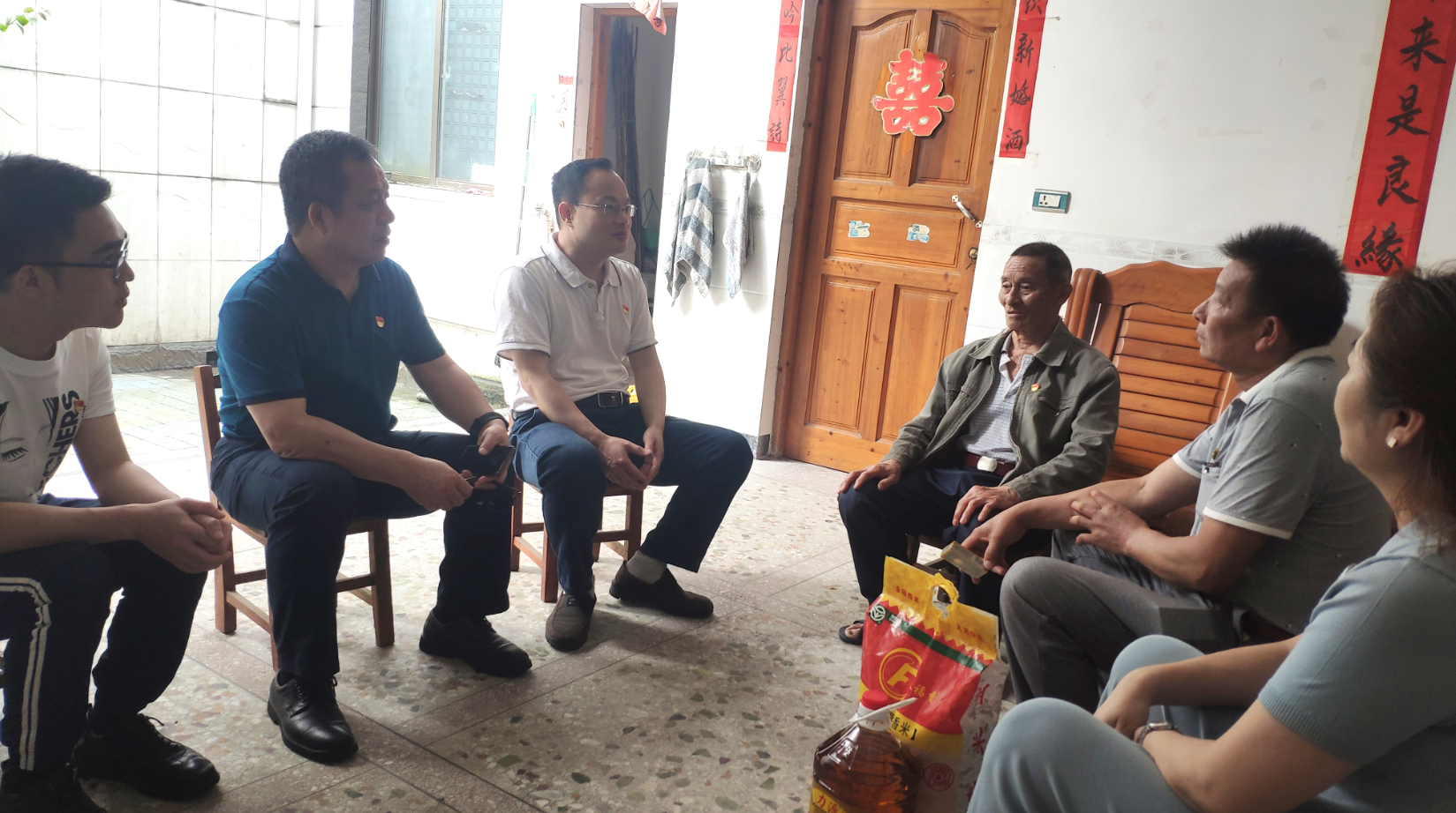 慰問組一行走訪慰問了兩位55年黨齡的困難老黨員林德貴和李天發(fā),并送上油米等慰問品。