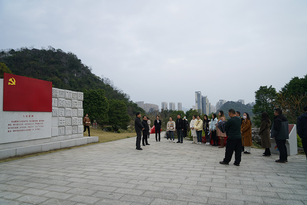 隨后在講解員的帶領(lǐng)下參觀黨建文化主題公園,在獅山山頂,看著不同時期的入黨誓詞,大家一起回顧了革命先輩們艱苦奮斗的歷史,并在黨旗下重溫了入黨誓詞,踏尋先輩足跡,銘記責(zé)任在肩,牢記初心使命,堅定理想信念。