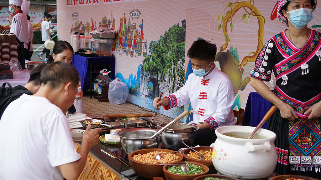 活動(dòng)現(xiàn)場(chǎng),“品非遺美食,游桂林山水”的主題引人入勝,桂林米粉、恭城油茶“非遺”文化展示及品嘗等活動(dòng)精彩紛呈。為確?;顒?dòng)的順利進(jìn)行,宏謀酒管公司迅速組織了20名一線工作者,他們不懼烈日高溫,全心全意地投入到工作中。盡管汗水浸透了他們的衣衫,但他們始終保持著飽滿(mǎn)的熱情和專(zhuān)注,為新生們提供了優(yōu)質(zhì)的服務(wù)。活動(dòng)現(xiàn)場(chǎng)氛圍火爆,總計(jì)供應(yīng)了2000碗米粉以及1500碗油茶,為初來(lái)乍到新生和家長(zhǎng)們帶來(lái)了一場(chǎng)別具特色的美食文化盛宴。