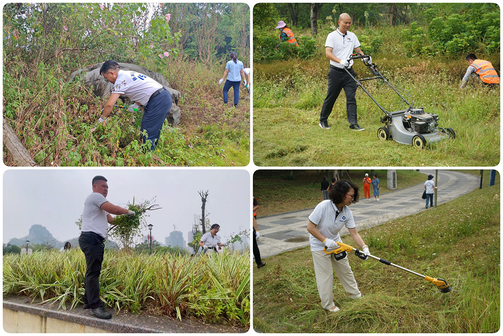 山水公園作為桂林新區(qū)的一張亮麗名片,承載著展現(xiàn)城市風(fēng)貌的重要使命。在國(guó)內(nèi)經(jīng)濟(jì)下行、財(cái)政支持相對(duì)不足的情況下,桂林新城投資開(kāi)發(fā)集團(tuán)有限公司(簡(jiǎn)稱“新城投集團(tuán)”)勇挑重?fù)?dān),為政府承擔(dān)起公園日常維護(hù)之責(zé)。2024年10月14日新城投集團(tuán)立足自身實(shí)際,充分發(fā)揮黨組織戰(zhàn)斗堡壘作用和黨員先鋒模范作用,廣泛動(dòng)員黨員干部沖鋒在前,以實(shí)際行動(dòng)踐行初心使命,積極開(kāi)展“黨旗映勝地,清潔我先行,為山水公園洗臉”主題黨日活動(dòng),這一行動(dòng),既為了維護(hù)桂林的良好形象,又切實(shí)保障了市民的生活舒適度。集團(tuán)黨委副書(shū)記(主持工作)、副董事長(zhǎng)、總經(jīng)理朱毅攜公司領(lǐng)導(dǎo)班子成員黨委副書(shū)記兼紀(jì)委書(shū)記譚力源,黨委委員、董事、副總經(jīng)理葉青旺,黨委委員、董事、副總經(jīng)理何萌,董事、副總經(jīng)理劉敏,第一、第二、第三黨支部全體黨員(含預(yù)備黨員)、發(fā)展對(duì)象、入黨積極分子、遞交入黨申請(qǐng)書(shū)員工共100余名黨員干部參加活動(dòng)。