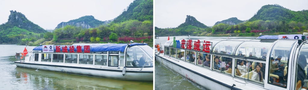 下午14時(shí),壽星們齊聚水一坊碼頭,乘“新城投號(hào)”“宏謀城運(yùn)號(hào)”開啟臨桂區(qū)環(huán)城水系全景游覽。碧波瀲滟的水面、錯(cuò)落有致的綠化景觀、古香古韻的橋梁建筑,這正是集團(tuán)近年來(lái)實(shí)施水溪支流、景觀提升工程的生動(dòng)注腳。通過(guò)實(shí)施一系列水系治理和綠化提升,環(huán)城水系不僅成為市民休閑娛樂(lè)的新去處,也成為集團(tuán)踐行綠色發(fā)展理念的重要成果展示窗口和臨桂區(qū)“生態(tài)會(huì)客廳”。