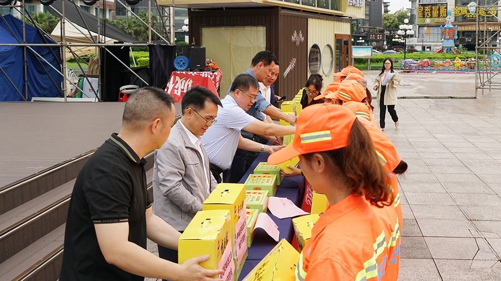 為深入踐行習(xí)近平總書記“以人民為中心”“勞動最光榮”的指導(dǎo)思想,切實把組織關(guān)懷送到基層勞動者心坎上,進一步提升環(huán)衛(wèi)職工隊伍的職業(yè)認同感和幸福感,2025年5月29日端午節(jié)前夕,新城投集團聯(lián)合宏謀城運公司在秀峰區(qū)中心廣場舉辦“粽香傳暖意,致敬城市美容師”端午節(jié)慰問活動。此次活動得到市城管委,秀峰區(qū)政府、城管局、環(huán)衛(wèi)站的大力支持與指導(dǎo)。市城管委黨組成員、副主任蔣毅出席活動。受新城投集團黨委書記、董事長朱毅委托,黨委副書記、紀委書記、工會主席譚力源代表集團黨委、領(lǐng)導(dǎo)班子及全體職工,向奮戰(zhàn)在環(huán)衛(wèi)一線的干部職工致以節(jié)日問候。