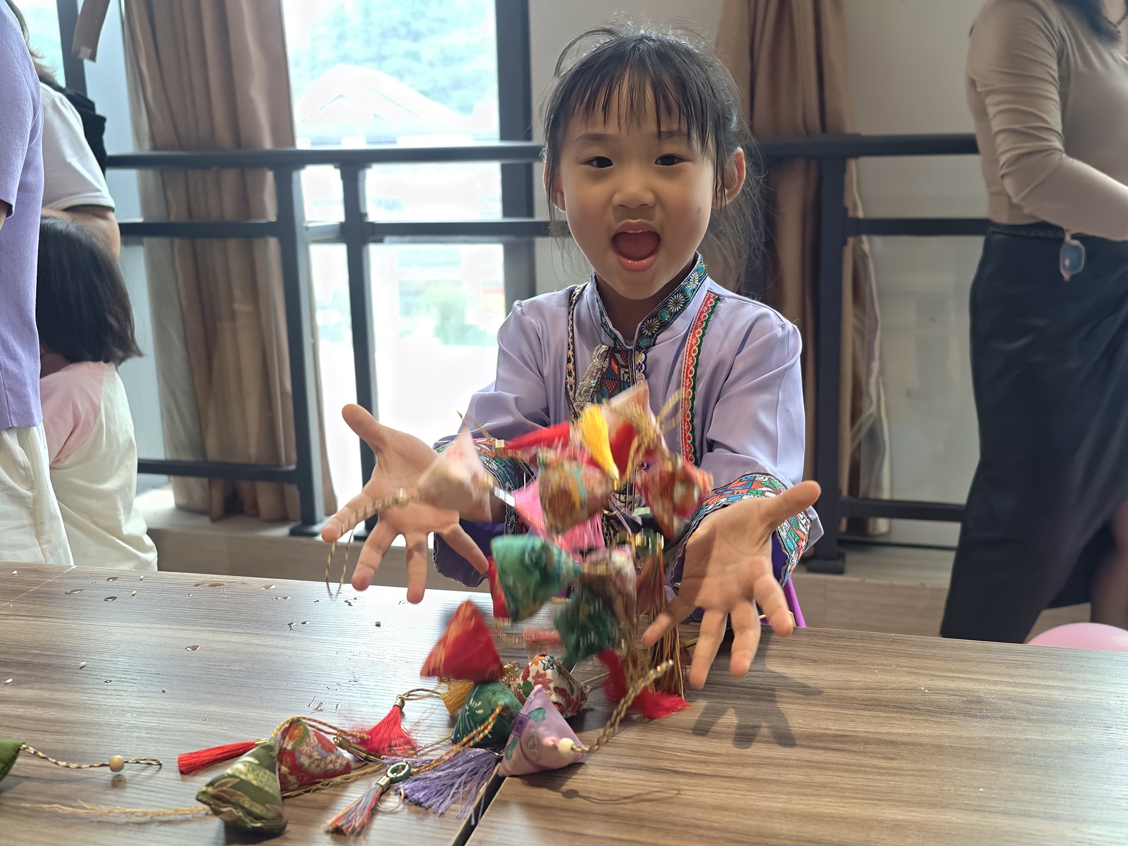 同時,大家在歡快的氛圍中集體移步至“非遺香囊”區(qū)。在這里,冠軍組憑借出色的表現(xiàn)獲得了優(yōu)先挑選香囊的特權(quán),其余組別則按照游戲總分排名依次挑選心儀的香囊。大家通過端午節(jié)香包深入了解中國各民族在端午節(jié)制作、佩戴香囊的悠久歷史和豐富的非遺傳承文化,感受到傳統(tǒng)文化的獨(dú)特魅力?;顒蝇F(xiàn)場還準(zhǔn)備了豐富的下午茶糕點(diǎn)、粽子等美食,讓大家在享受文化體驗的同時,也能滿足味蕾的享受。