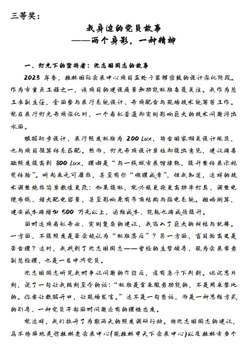 為確保比賽的專業(yè)性與公正性,集團黨委聯(lián)合第三黨支部委員及群眾代表組成評審小組,從主題性、感染力、文字表達、創(chuàng)新性四個維度對作品進行綜合評分。經(jīng)過層層篩選,最終評選出一等獎2名、二等獎1名、三等獎3名、優(yōu)秀獎5名。獲獎作品既有對黨員先進事跡的深度刻畫,也有對黨性精神的深刻詮釋,充分反映了參賽者的真情實感與創(chuàng)作水平。