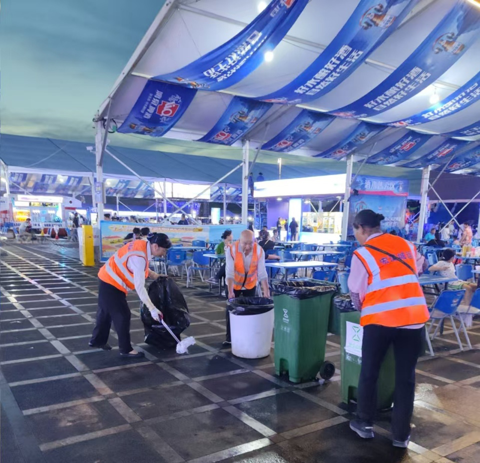 垃圾清運(yùn):13天累計(jì)清理垃圾約2600袋(日均200袋),餐飲垃圾定點(diǎn)清運(yùn),煙花秀廢棄物散場1小時(shí)內(nèi)清理,無堆積滯留。
