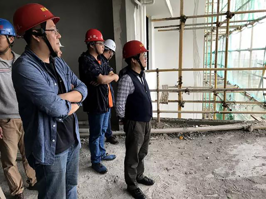 圖為譚力源組織項(xiàng)目管理人員和監(jiān)理、施工單位人員開展安全檢查