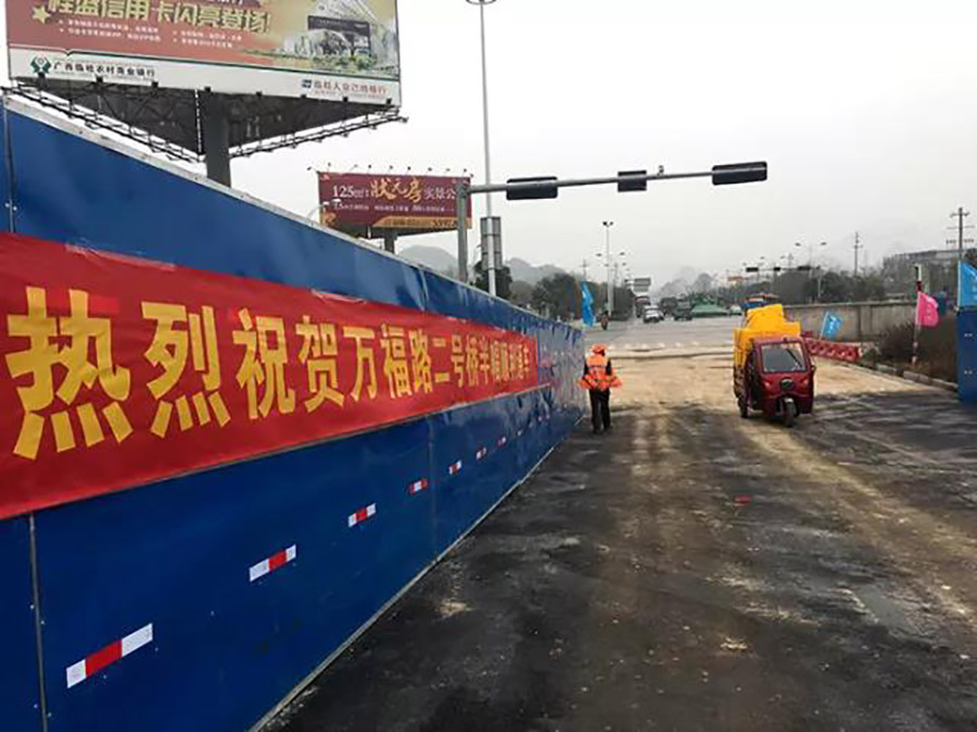 根據(jù)市政府、臨桂區(qū)及新區(qū)管委關(guān)于加快臨桂新區(qū)水系通航、實(shí)現(xiàn)橋梁通車(chē)的時(shí)間節(jié)點(diǎn)要求,新城投資集團(tuán)按照臨桂區(qū)、新區(qū)管委領(lǐng)導(dǎo)的指示精神,科學(xué)組織、精心施工、搶抓工期,逢節(jié)假日繼續(xù)加班加點(diǎn),于2018年1月19日順利實(shí)現(xiàn)了半幅臨時(shí)通車(chē),同時(shí)橋下圍堰拆除,達(dá)到了水系通航條件。