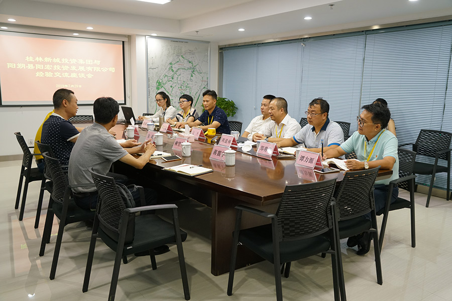7月29日,陽(yáng)朔縣陽(yáng)宏投資發(fā)展有限公司總經(jīng)理朱毅率領(lǐng)導(dǎo)班子一行四人到新城投資集團(tuán),就融資、項(xiàng)目建設(shè)等進(jìn)行交流學(xué)習(xí),并到公司建設(shè)項(xiàng)目現(xiàn)場(chǎng)進(jìn)行了參觀。桂林市臨桂新區(qū)管理委員會(huì)副主任文杰,新城投資集團(tuán)董事長(zhǎng)、總經(jīng)理周道林,副總經(jīng)理鄧仁友、鄭善華、張新悅,新城投資集團(tuán)工會(huì)主席譚力源等參加座談。