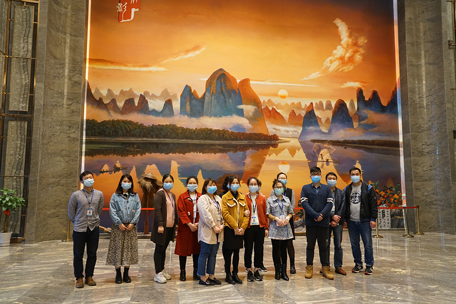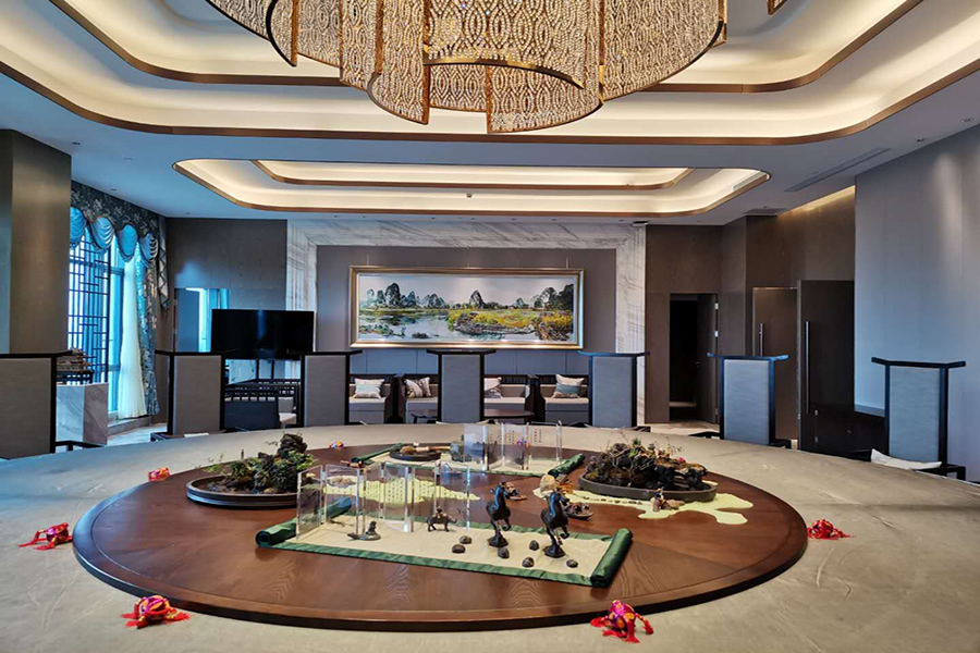 試業(yè)的桂林宏謀大酒店,充分展現(xiàn)現(xiàn)代藝術酒店的低調、大氣、有內涵。巨型的漓江黃布倒影油畫、璀璨的銅鼓吊燈、云卷的砂巖壁畫……大家被名家友情布展酒店的字畫、雕塑精品的獨特文化氛圍感染,感嘆酒店有深度的藝術魅力。參觀的員工紛紛駐足拍照,發(fā)朋友圈廣泛宣傳藝術的宏謀、文化的酒店。