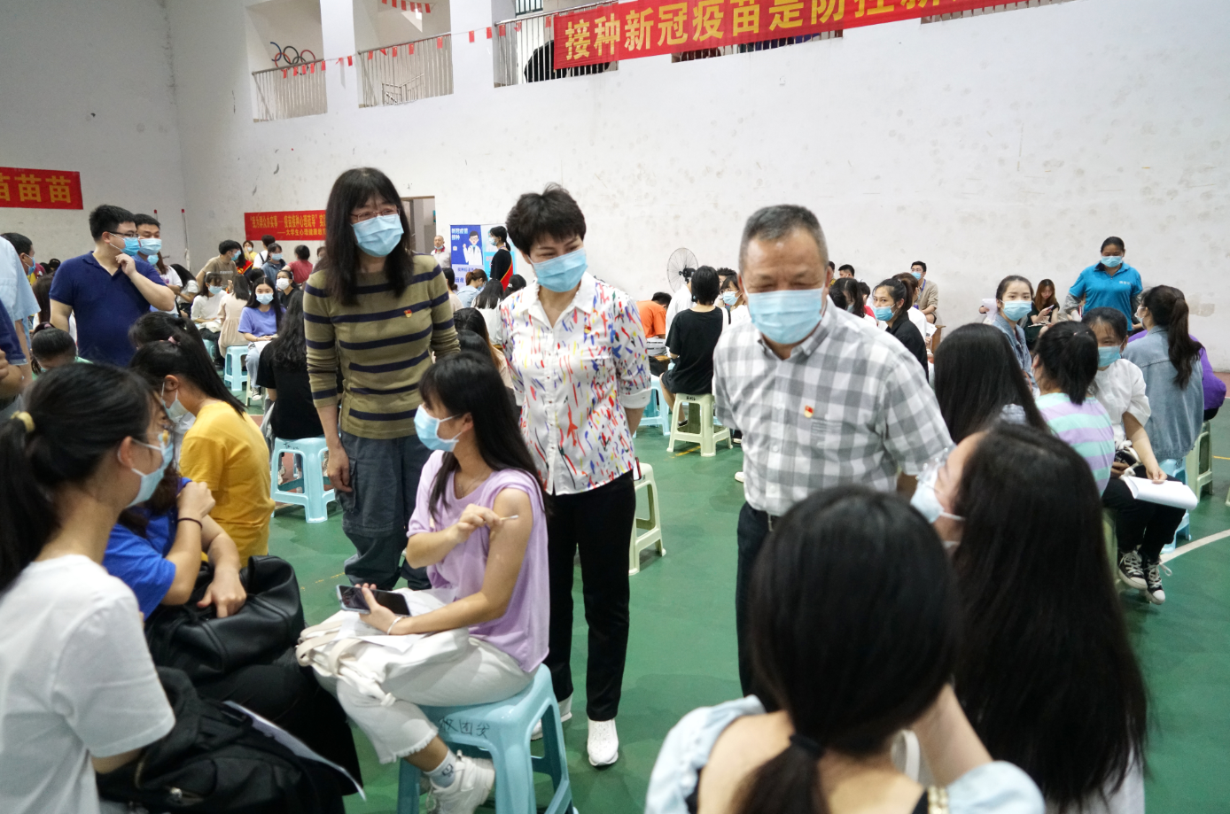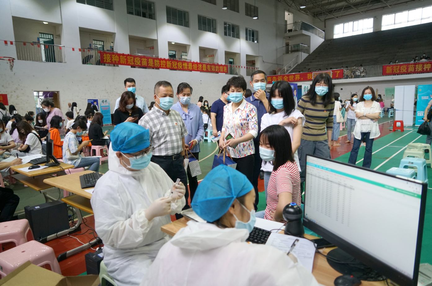 “寢室同學(xué)都打過了嗎?”“同學(xué)們接種疫苗后有什么不舒服感覺嗎?”在留觀區(qū),周道林一行向同學(xué)們了解接種疫苗之后的情況?!皩嬍彝瑢W(xué)都打了!”“接種疫苗的時候不是很疼”“沒有出現(xiàn)身體不適”,接種完疫苗的同學(xué)神色輕松地交流著接種的感受。場館內(nèi),測溫、知情同意書領(lǐng)取與填寫、醫(yī)務(wù)問詢、身份證信息核對與錄入、疫苗接種各個環(huán)節(jié)有條不紊地推進。