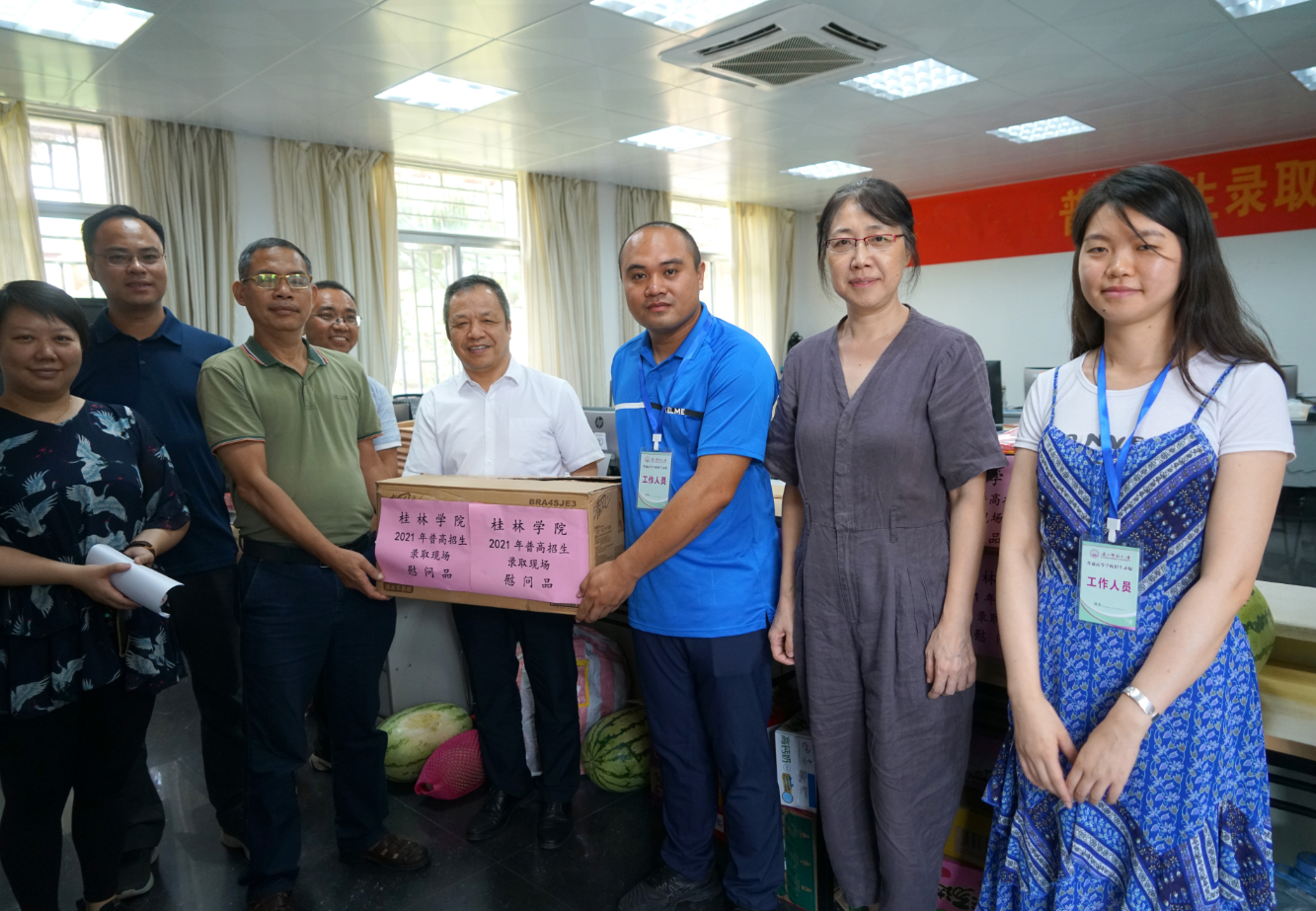 7月26日,新城投資集團黨總支書記、董事長、總經(jīng)理、桂林學(xué)院董事長周道林,校長楊樹喆,校黨委書記唐文紅等組成慰問組來到桂林學(xué)院招生錄取工作現(xiàn)場,慰問招生錄取工作人員,了解招生錄取工作進展,指導(dǎo)招生錄取工作。