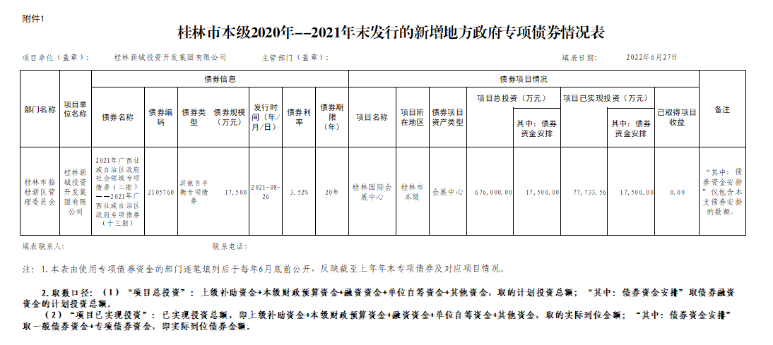 桂林新城投資開發(fā)集團有限公司關于2020年-2021年發(fā)行的新增政府債券使用和管理情況