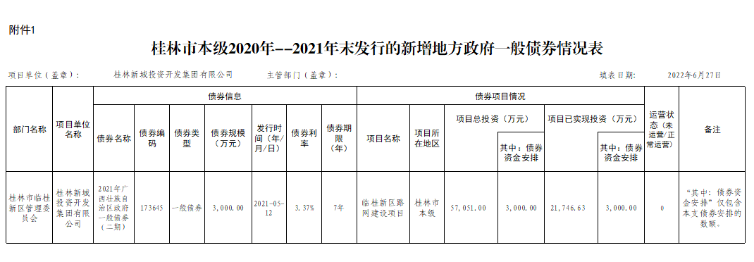 桂林新城投資開發(fā)集團有限公司關于2020年-2021年發(fā)行的新增政府債券使用和管理情況