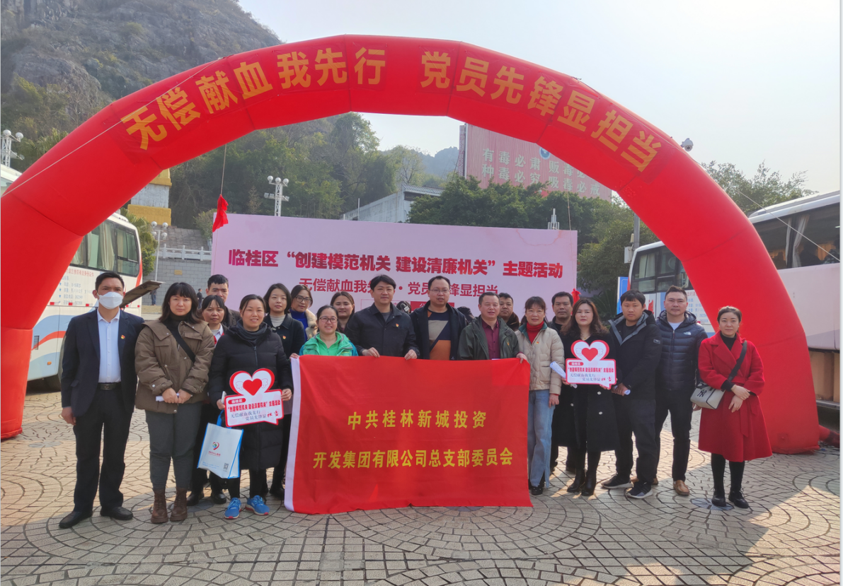 2023年2月28日,臨桂區(qū)直機關(guān)工委、臨桂區(qū)衛(wèi)健工委在桂林金山廣場開展“無償獻血我先行 黨員先鋒顯擔(dān)當(dāng)”主題活動,新城投集團黨總支雖然已劃轉(zhuǎn)至桂林城鄉(xiāng)建設(shè)控股集團有限公司,但是集團黨總支始終把講政治講大局放在第一位,在接到通知后,根據(jù)屬地原則立即進行了動員部署,黨員干部職工紛紛響應(yīng)號召,組建了一支30余人的獻血隊伍,是獻血人數(shù)最多的單位之一,得到了主辦單位的肯定與好評。