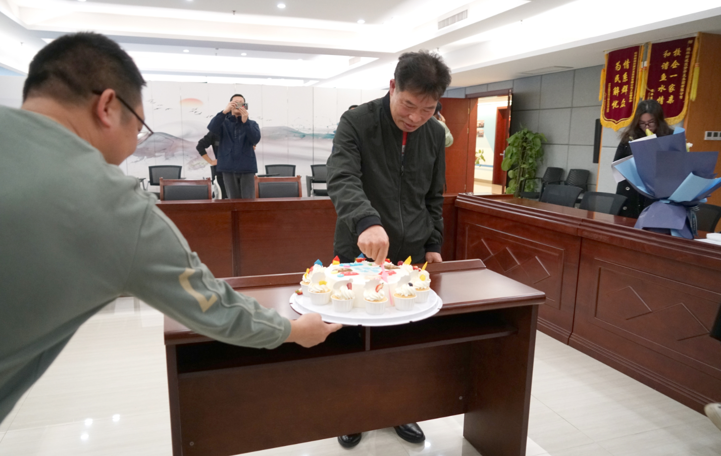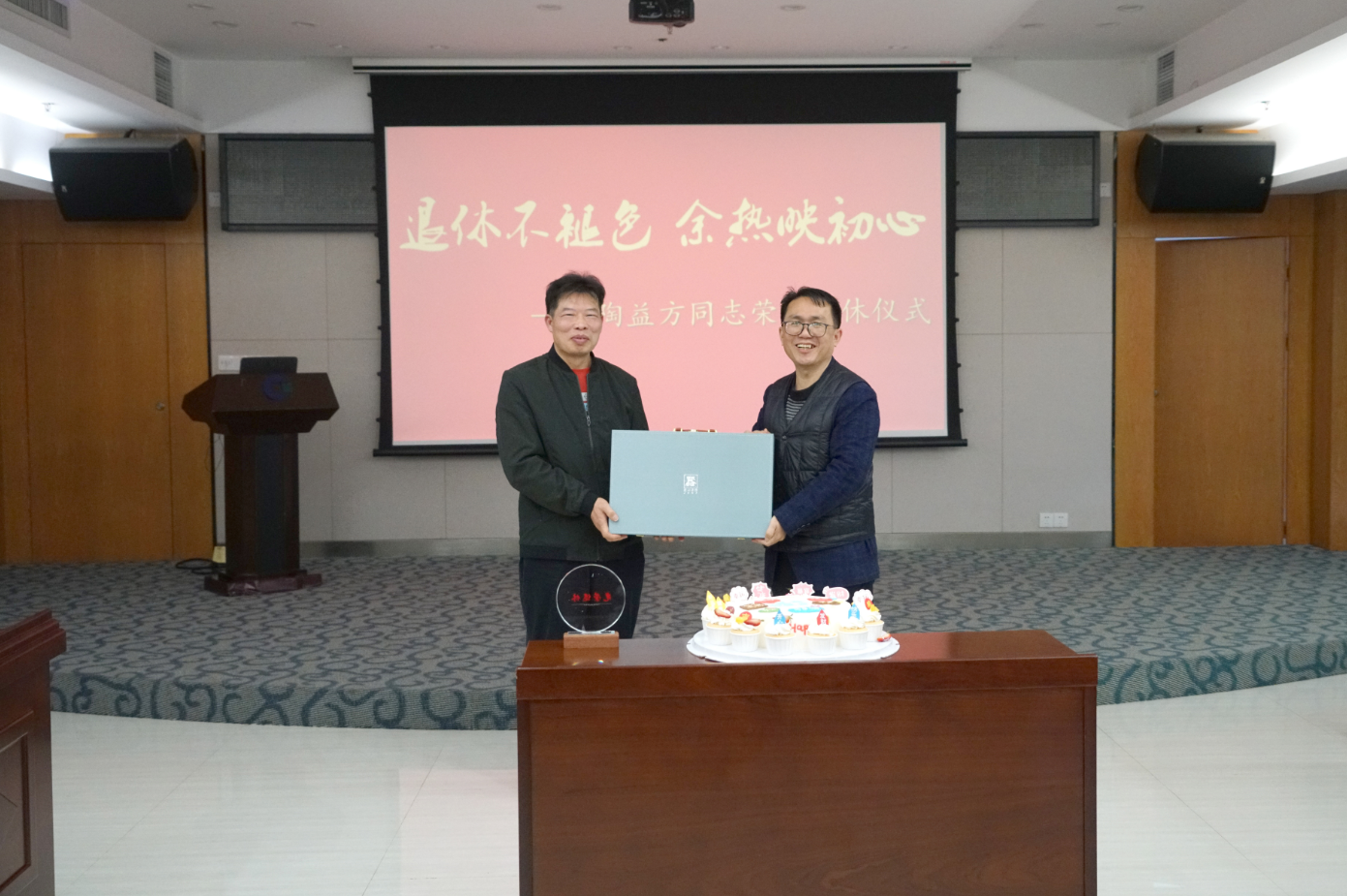 隨后,集團公司領(lǐng)導向陶益方同志贈送退休禮物、相冊及鮮花,切蛋糕并合影留念。