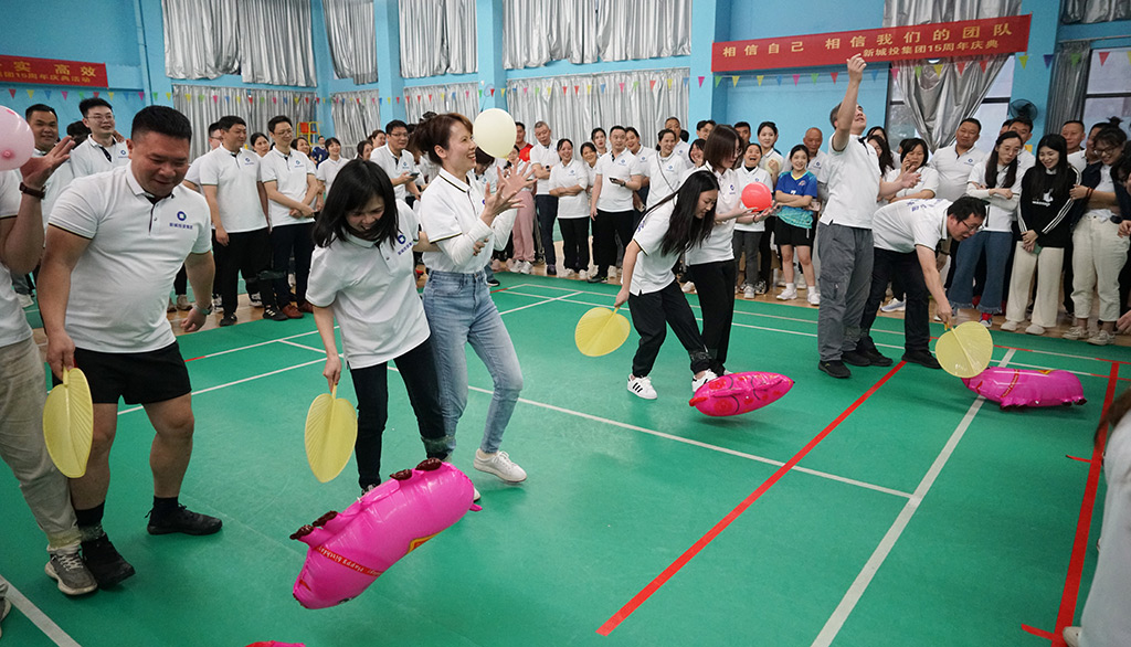 在目睹了兩場賽事的視覺盛宴后,職工們都躍躍欲試,迫不及待地參加集體團建活動?!皟扇巳憬恿s豬”游戲考驗隊員們的協(xié)調(diào)性、敏捷性和團隊合作意識,集團領(lǐng)導(dǎo)班子成員何萌與同伴一道齊心協(xié)力,順利完成比賽;“聽口令做動作”游戲考驗的是專注力、反應(yīng)力和身體協(xié)調(diào)性,集團領(lǐng)導(dǎo)班子成員劉敏在這個環(huán)節(jié)展現(xiàn)了一定的實力;“瞎子摸魚”游戲側(cè)重考驗職工的觀察力、反應(yīng)力和團隊合作能力,對體能也有一定的要求,跑得慢的“魚”,將迎強壯“瞎子”的當(dāng)頭一棒,與生俱來的逃生欲讓游戲變得緊張刺激而又滑稽。輕松愉悅的活動氛圍讓大家沉浸其中,現(xiàn)場充滿了歡聲笑語,洋溢著喜慶的氣氛。