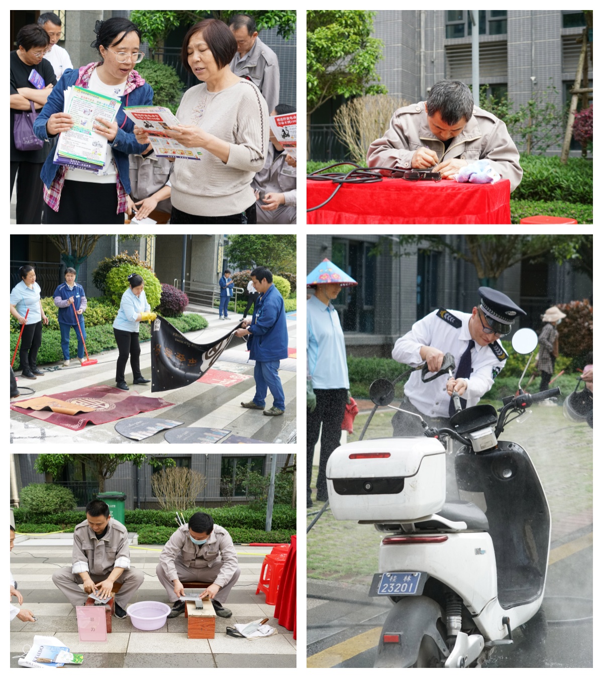 志愿者們向小區(qū)居民發(fā)放宣傳單,宣傳消防安全、防電信詐騙等知識(shí),提醒大家在日常生活中規(guī)范使用燃?xì)?、有序停放電單?chē),讓廣大居民更好地了解最近的電信詐騙手段和方式以及如何預(yù)防詐騙的常識(shí)。活動(dòng)現(xiàn)場(chǎng)還免費(fèi)提供家用小家電維修、愛(ài)心磨刀、清洗電單車(chē)、地墊清洗等服務(wù),小區(qū)居民參與熱情高漲,志愿服務(wù)贏得一致好評(píng)。一位來(lái)自呼倫貝爾市的大媽主動(dòng)找到戴黨徽的同志,深情地說(shuō):“黨員來(lái)了,我們的生活就充滿希望了,一名黨員就是一面旗幟,一個(gè)支部就是一座堡壘”。