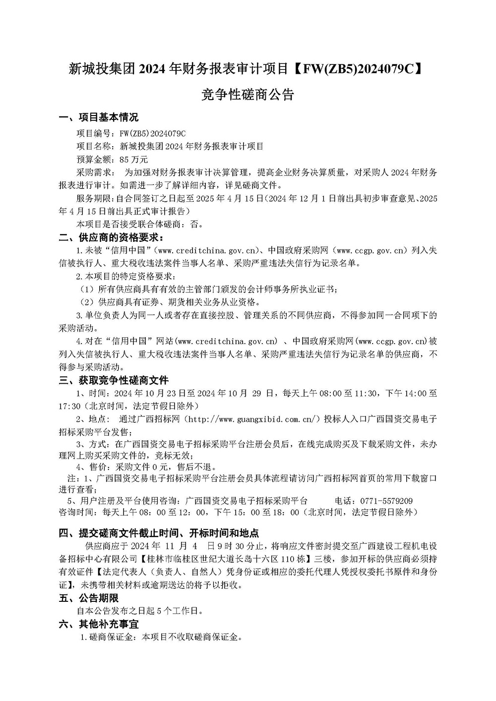 新城投集團(tuán) 2024 年財務(wù)報表審計項目【FW(ZB5)2024079C】 競爭性磋商公告