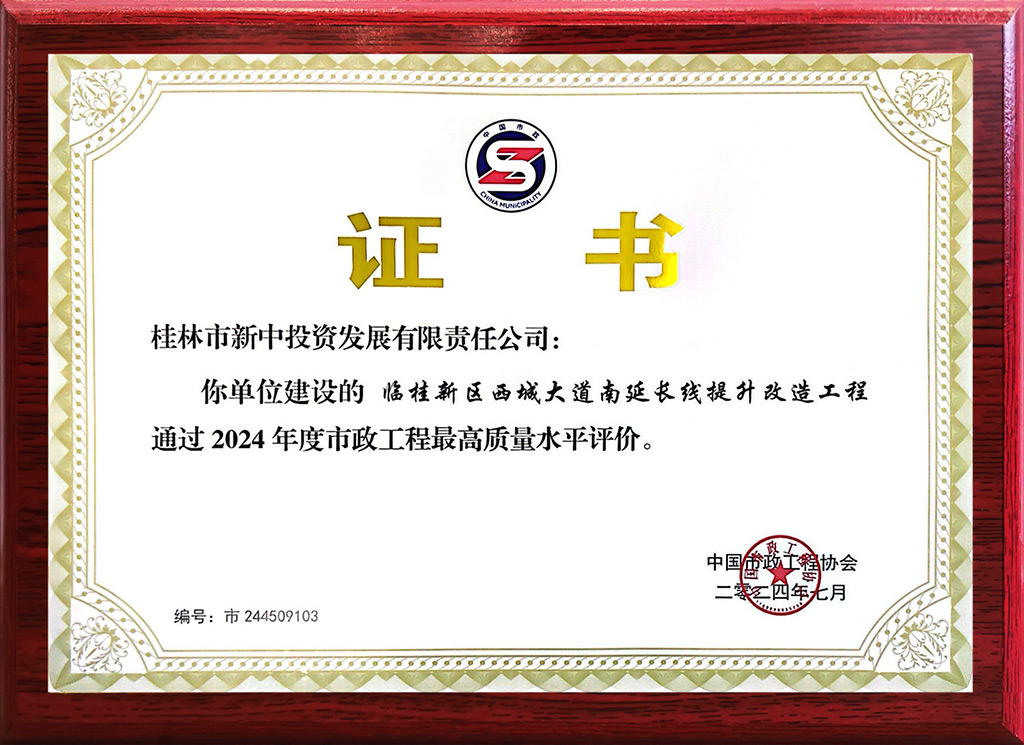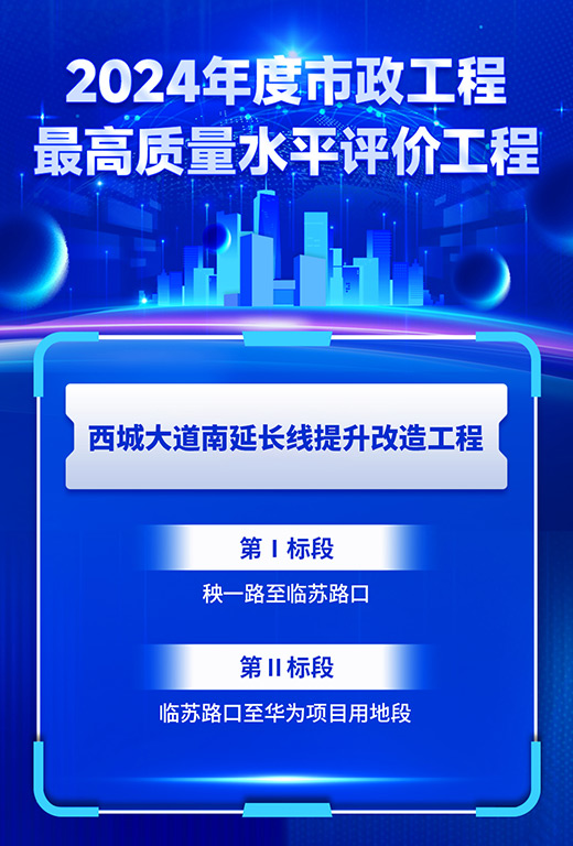 近日,中國市政工程協(xié)會公布了2024年度市政工程最高質(zhì)量水平評價工程名單,新城投集團黨委黨建子品牌“黨旗映勝地 建設(shè)我先行”重要實踐地——西城大道南延長線提升改造工程(以下簡稱“西城大道南延長線工程”)榮登榜單。該獎項(即原國家市政工程金獎)是市政工程行業(yè)在工程質(zhì)量方面最高質(zhì)量水平評價,代表市政工程行業(yè)同時期國內(nèi)頂尖水平,在行業(yè)內(nèi)具有重要的示范引領(lǐng)作用。西城大道南延長線工程榮獲此殊榮,充分證明新城投集團在市政建設(shè)領(lǐng)域的實力。