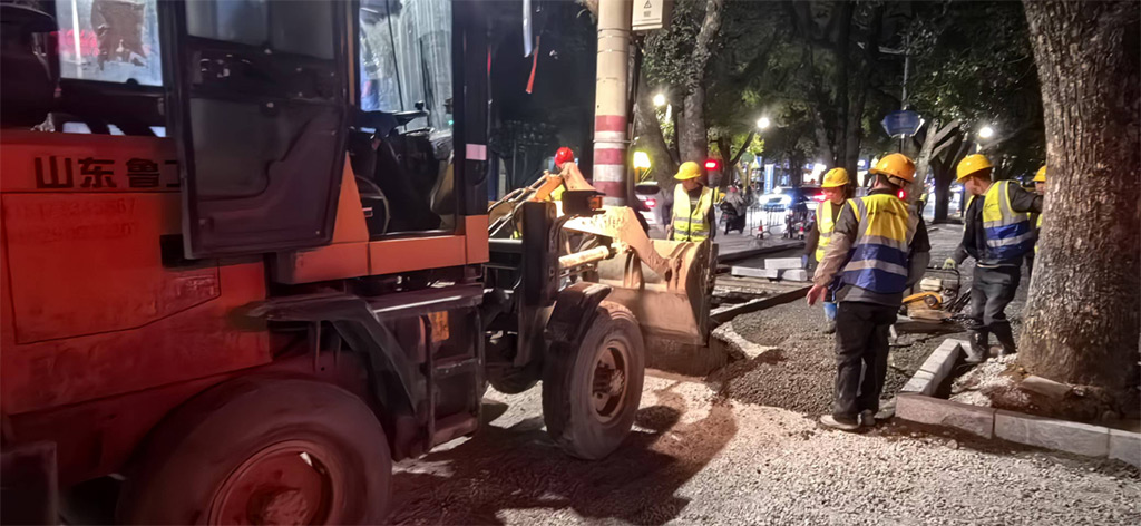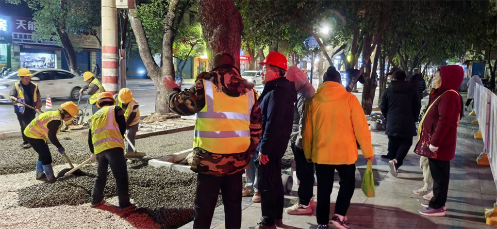 為確保蘆笛小學(xué)教學(xué)活動正常進行,最大限度降低對周邊居民日常出行的影響,項目采取夜間和周末加班加點的工作方式,全體黨員干部職工發(fā)揚“五加二、白加黑”的奮斗精神,爭分奪秒推進工程進度,成功在兩天內(nèi)超額完成蘆笛小學(xué)門口130多米人行道1300多平方米的透水混凝土改造任務(wù),彰顯了項目團隊高效的施工能力和團結(jié)協(xié)作的精神風(fēng)貌,充分展現(xiàn)了黨員的先鋒模范作用。